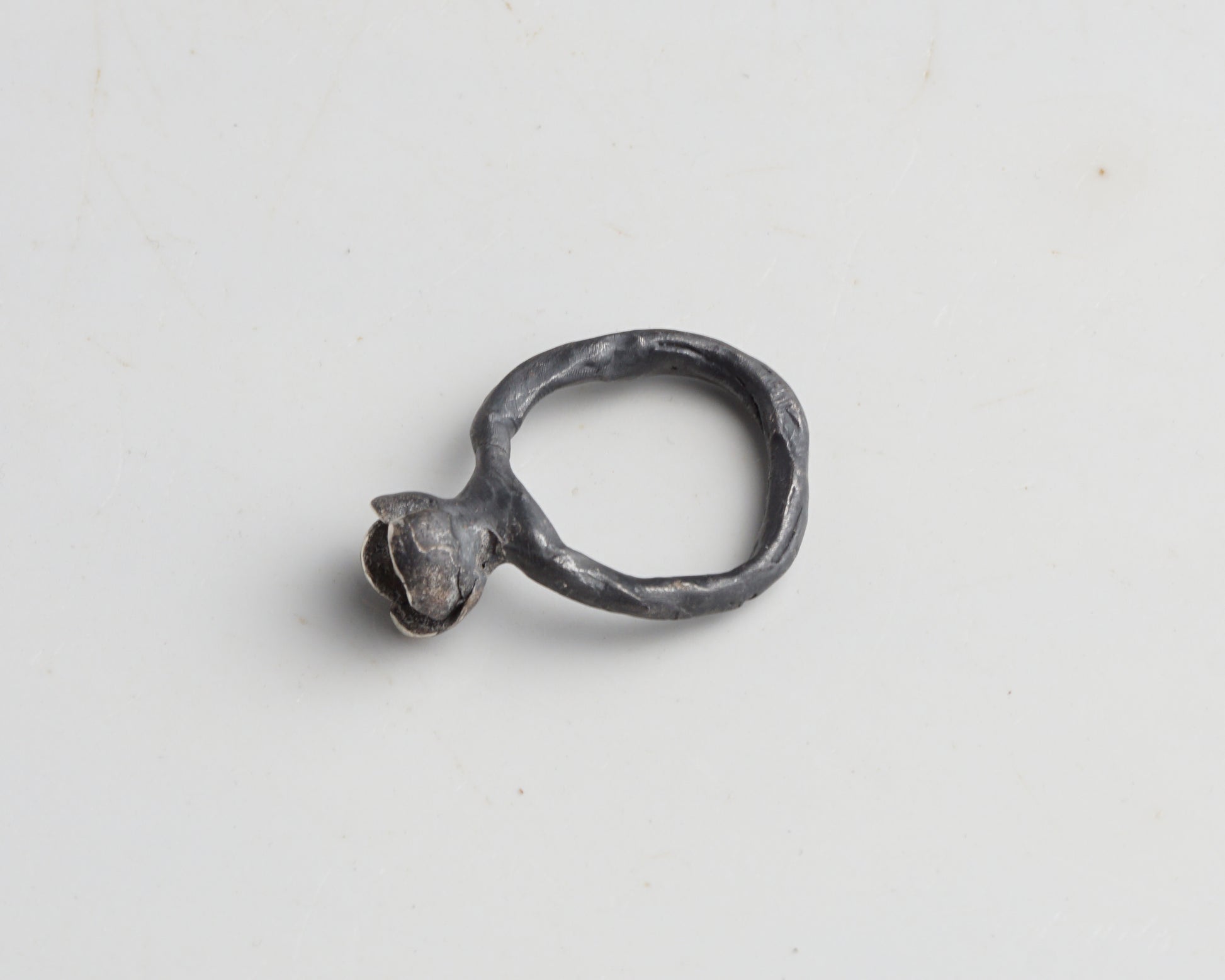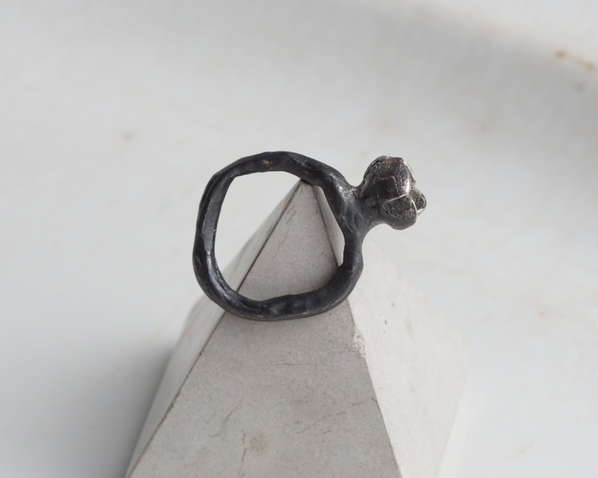 This ring is made to order. Production time: 12 business days. A handcrafted ring made of oxidized sterling silver (925) shaped as a delicate bud with a small gold detail inside.